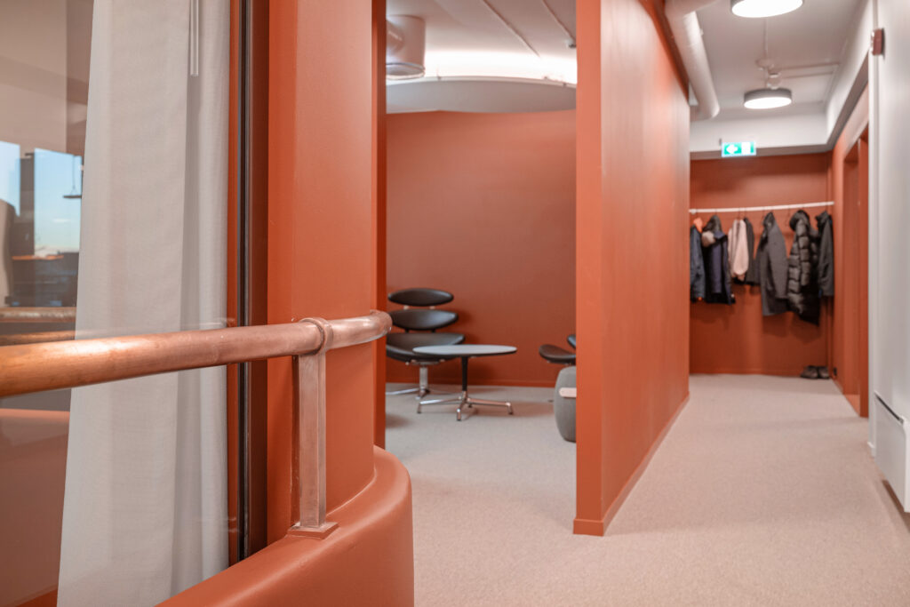 Første halvår 2023 foretok vi en betydelig oppgradering av Handelens Hus. Ny og påbygget 5. etasje, nytt ventilasjonsanlegg, sykkelparkering og nye dusj- og garderobefasiliteter. Som totalentreprenør valgte vi Byggfornying. Grundige forarbeider og analyser av bygget ble foretatt, dette for å avdekke muligheter for gjenbruk. Byggfornying valgte kortreiste leveranser og produkter, og de valgte underleverandører med et sterkt og dokumentert fokus på miljø og bærekraft. Det ble en ryddig og god byggeprosess, et godt samarbeid mellom Byggfornying, arkitekt og oss. Prosjektet ble levert både på tid og budsjett. For oss vil prosjektet være en mal, representerer våre krav til fremtidige ombygginger og tilpasninger av lokaler i Handelens Hus. Vi ønsker å være bevisste rundt bærekraft – må se potensialet i de byggene vi har.