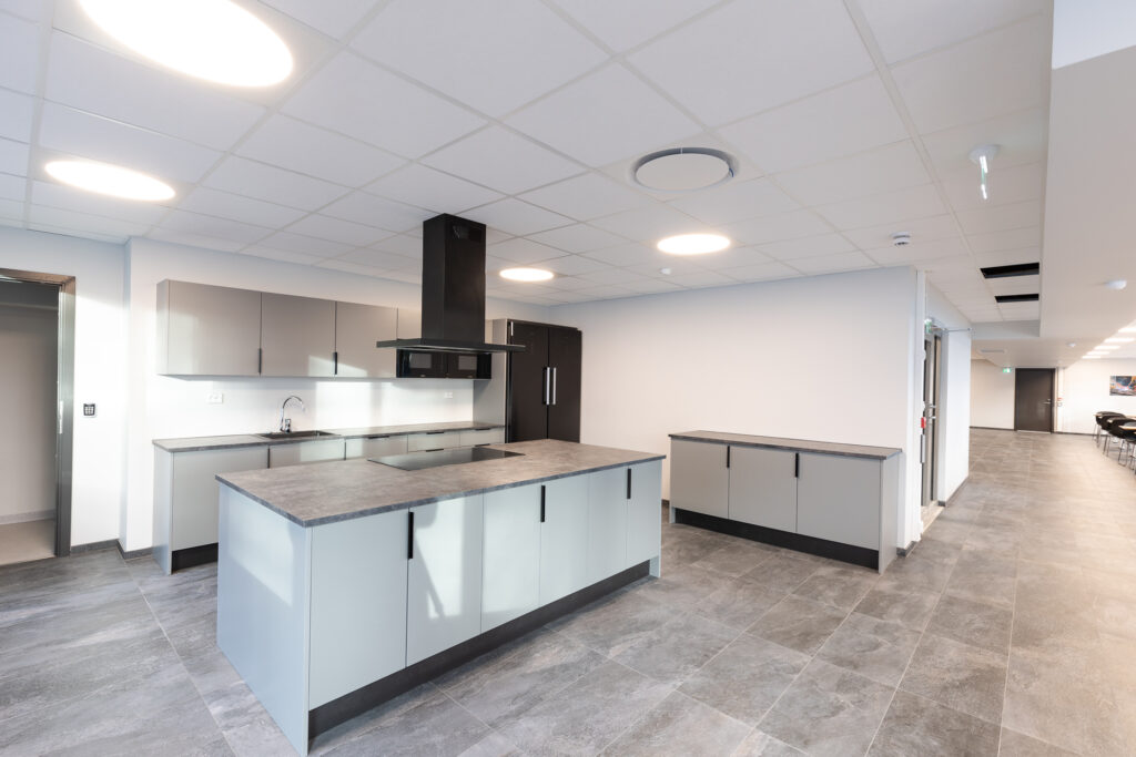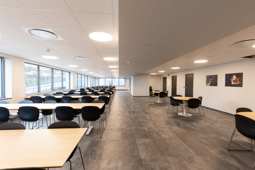 Vi har oppgradert kontor- og kantinebygget til Randaberg Industries, med både innvendig ombygging og ENØK-tiltak som oppgradert teknisk anlegg, nye vinduer og bedre isolert fasade.